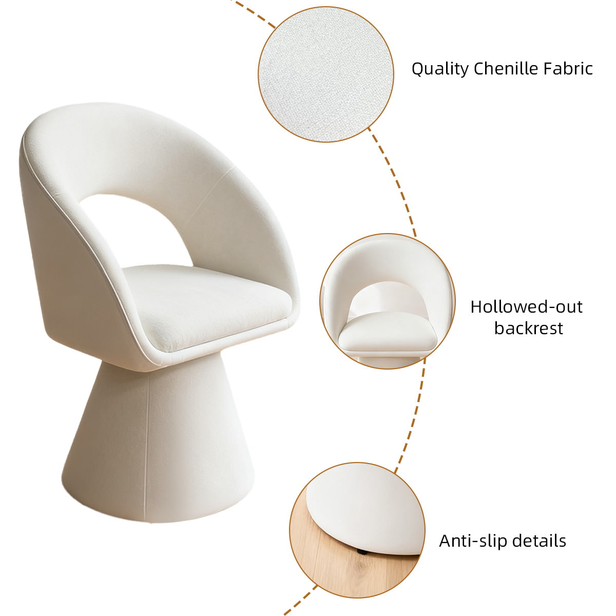 Современный изогнутый дизайн, вращающийся стул кремово-белого цвета с бархатным акцентом Тедди — вращающийся на 360 ° мягкий стул для столовой и отдыха с полой спинкой