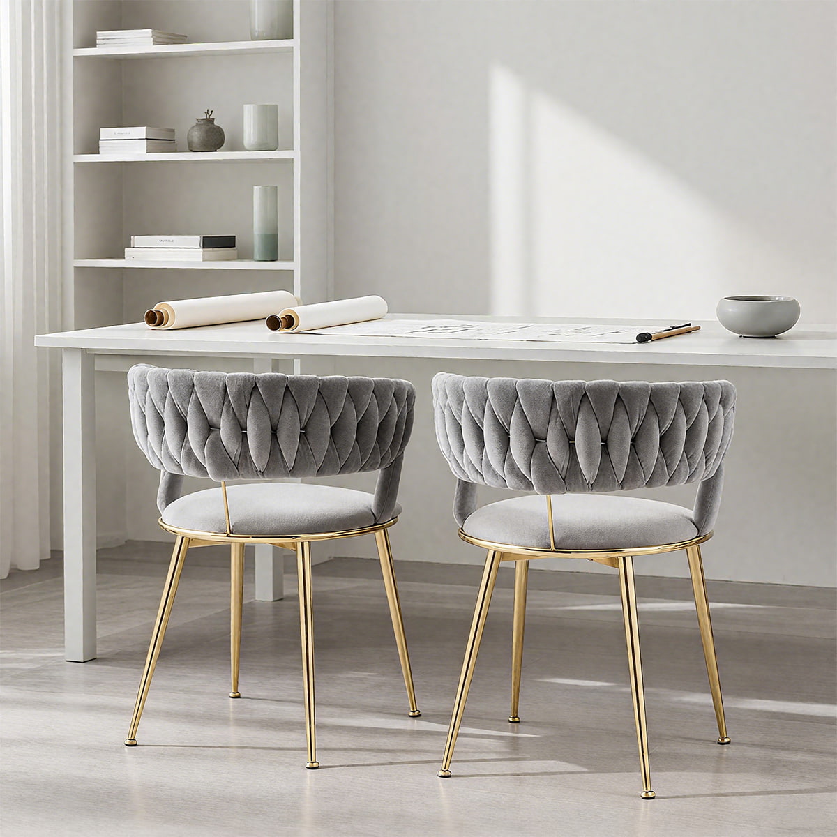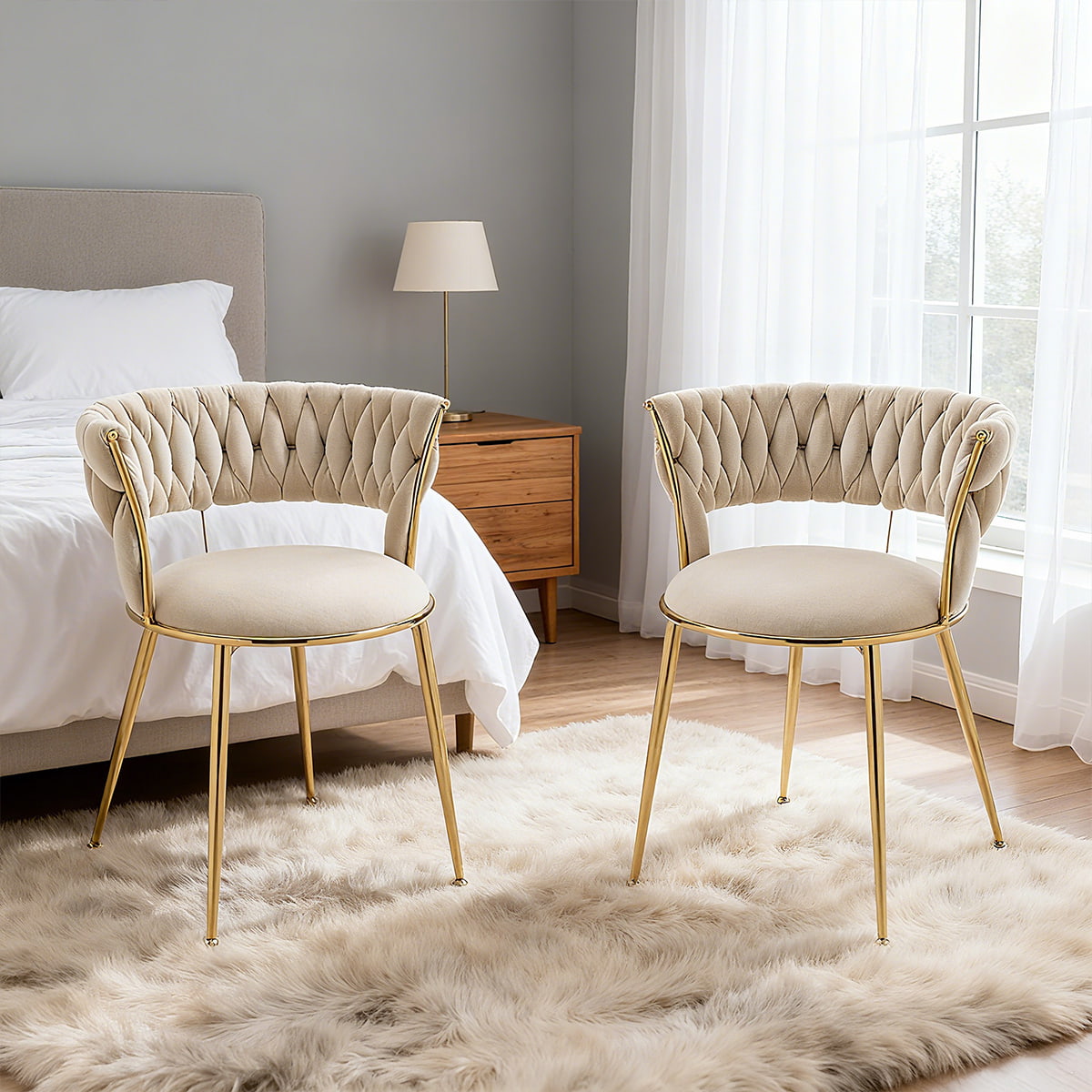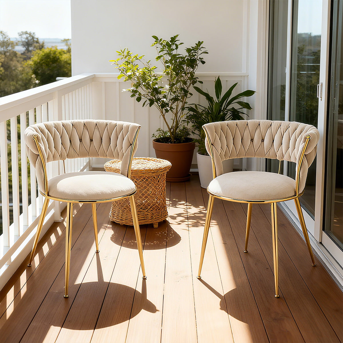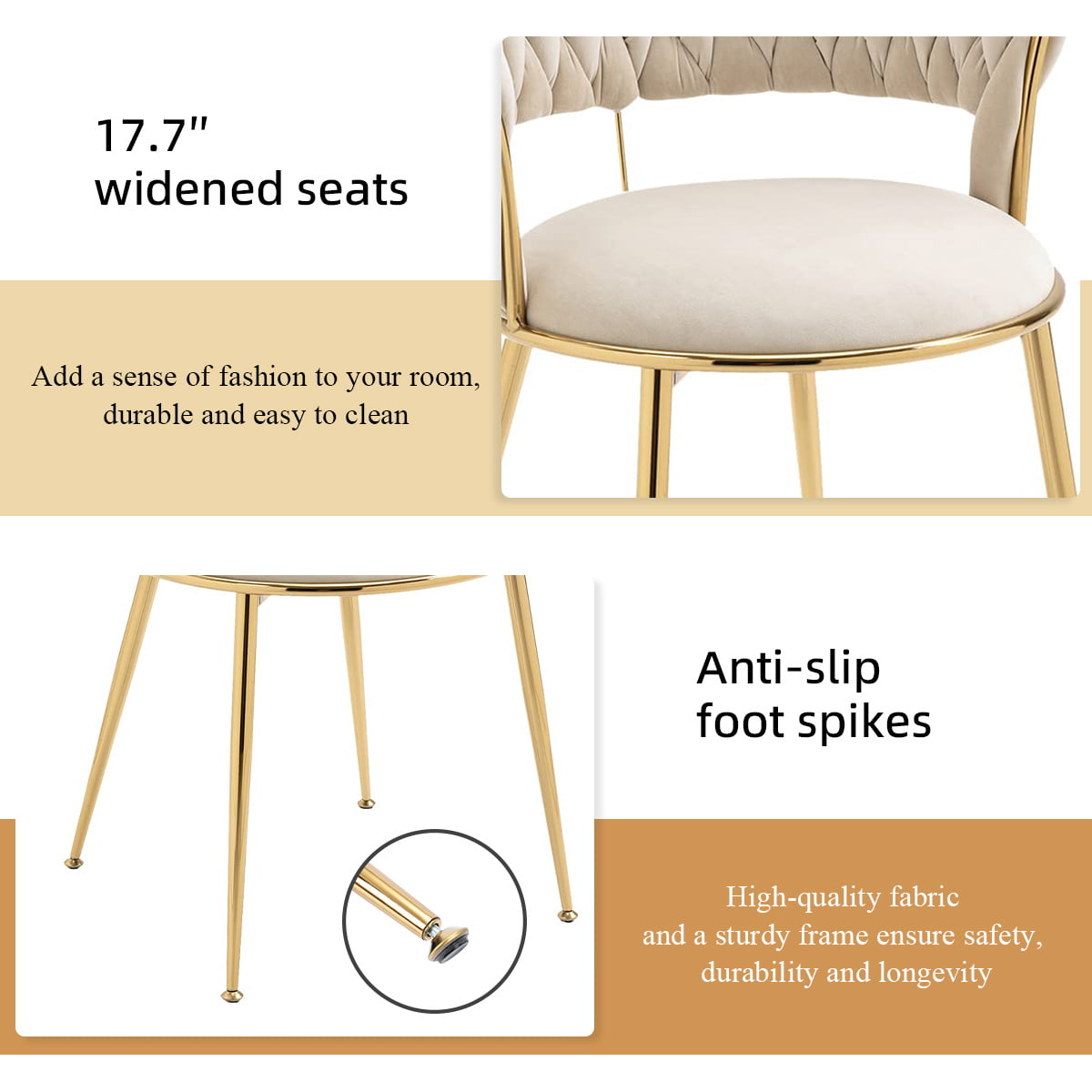 Современный бархатный обеденный стул цвета слоновой кости с тканой спинкой и золотыми металлическими ножками — элегантный стул с акцентной обивкой для столовой, кухни или гостиной
