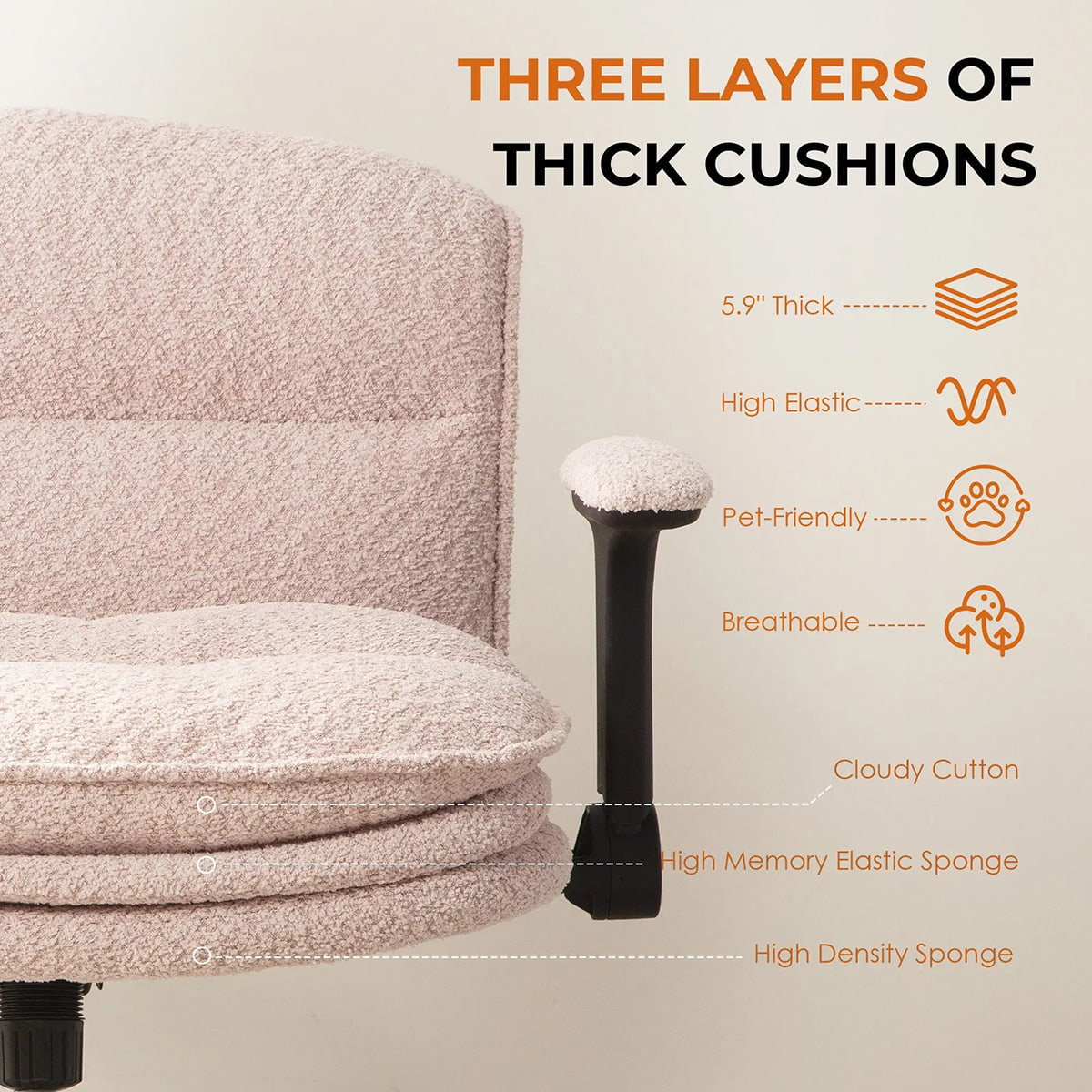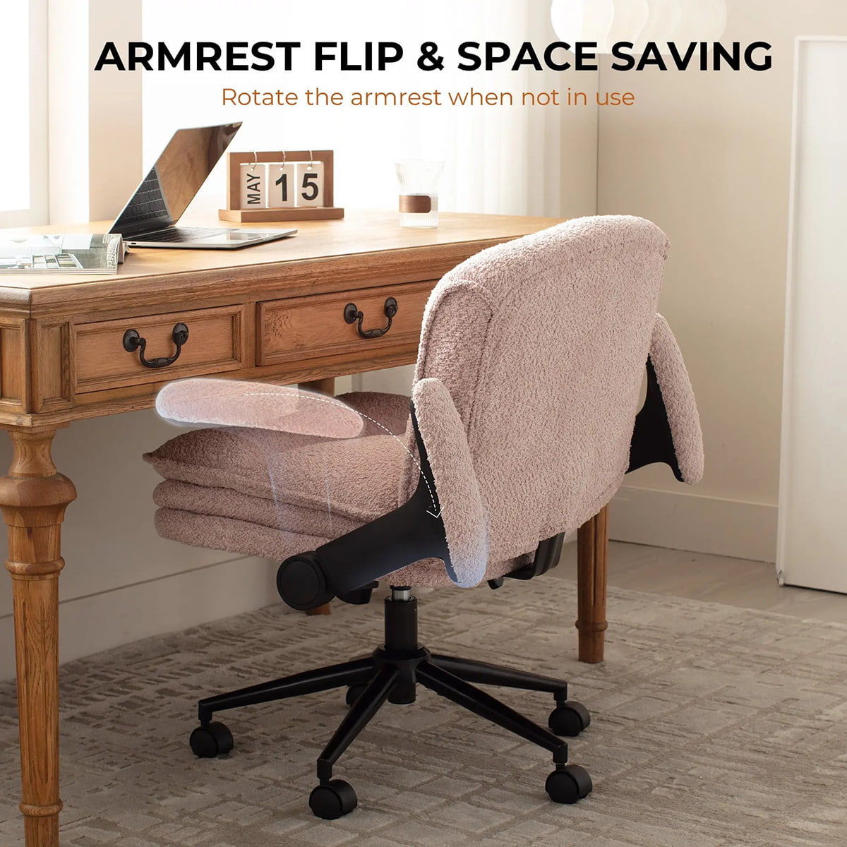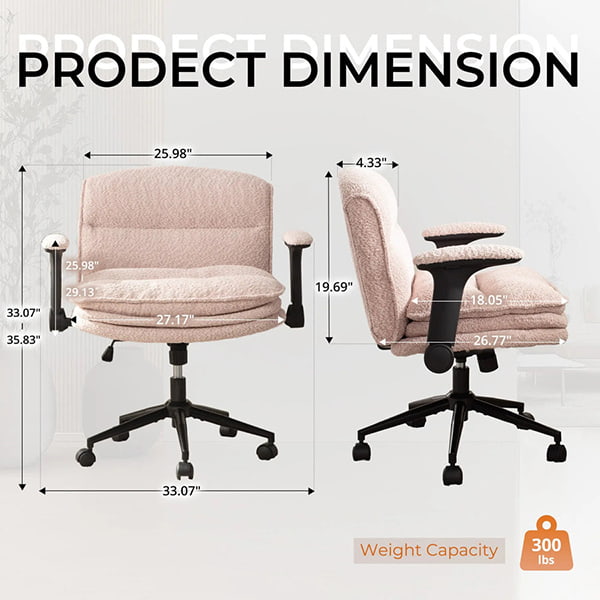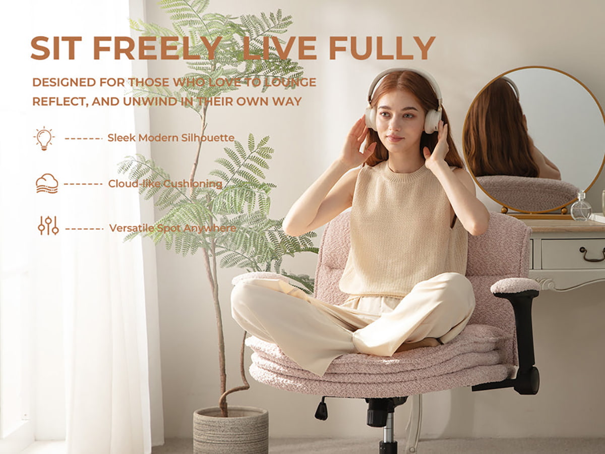 ② Эргономичный письменный стул со скрещенными ногами, регулируемыми подлокотниками, поворотом на 360° и толстыми подушками — Стул для домашнего офиса Bouclé