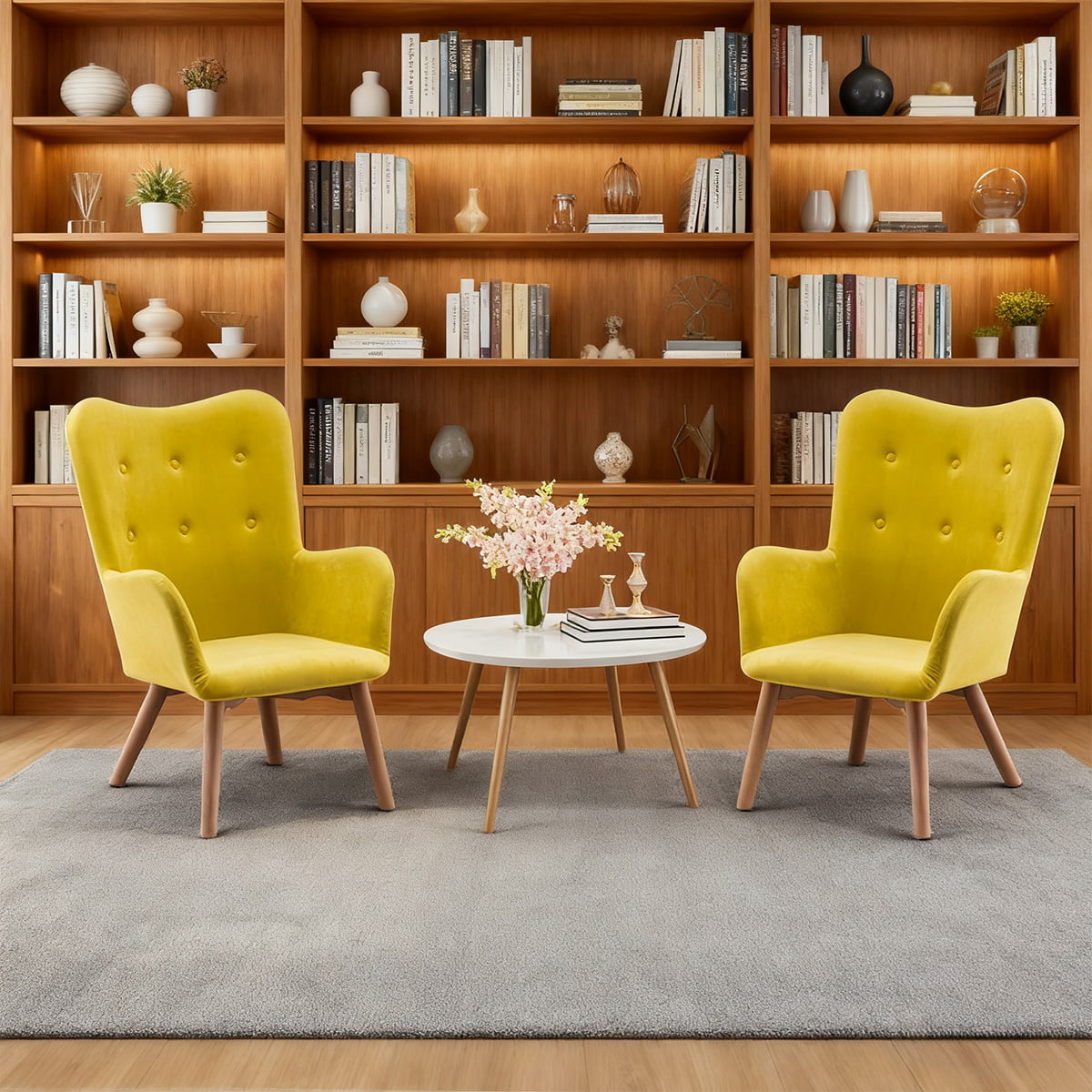 Современное кресло с желтым бархатным акцентом — кресло для отдыха с тафтинговой спинкой, деревянными ножками и подлокотниками для гостиной, спальни или офиса