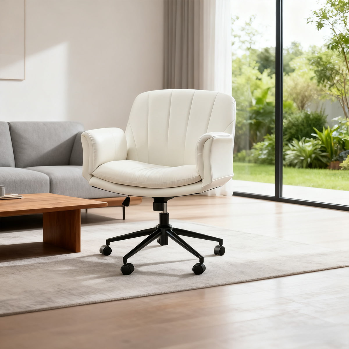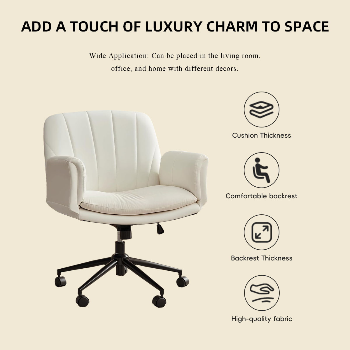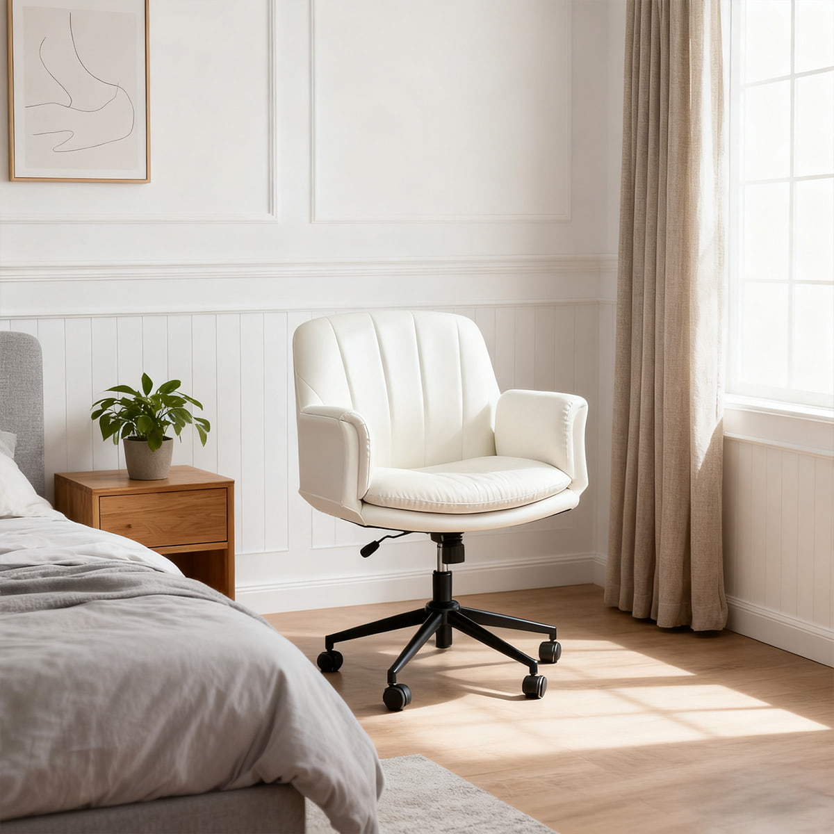 Регулируемое вращающееся кресло из искусственной кожи крест-накрест с 5-ступенчатыми подлокотниками и колесами — эргономичное кресло для туалетного столика/офиса/кресло для макияжа (молочно-белый)